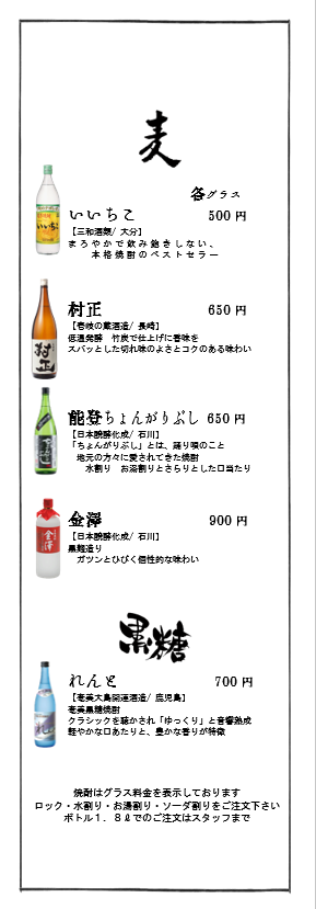 | 備考 | 個室あり 飲み放題あり サービス料・チャージ料なし |